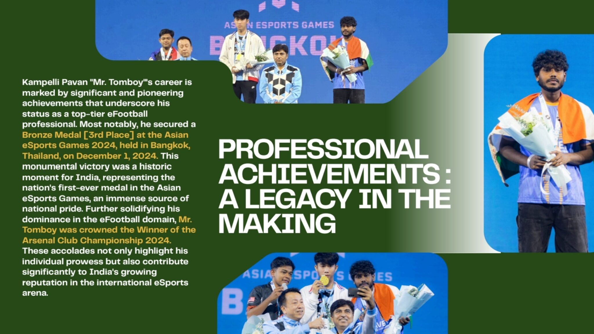 Achievements A LEGACY IN THE MAKING Bronze Medal at the Asian eSports Games 2024 Mr. Tomboy was WON the Arsenal Club Championship 2024